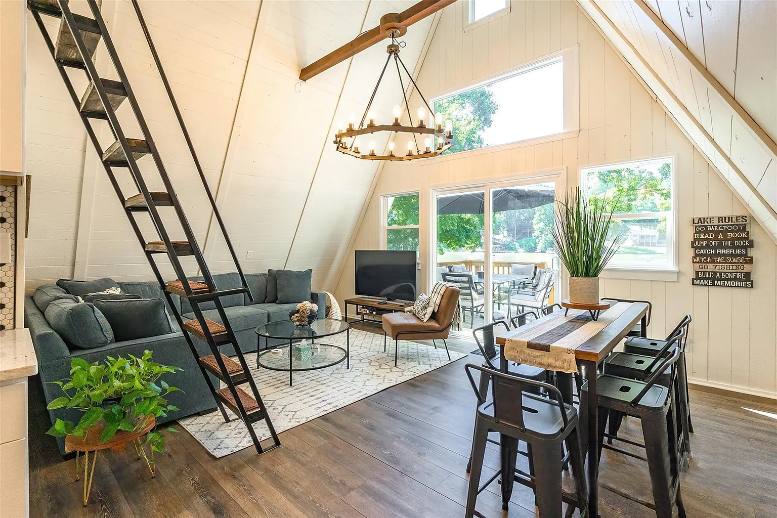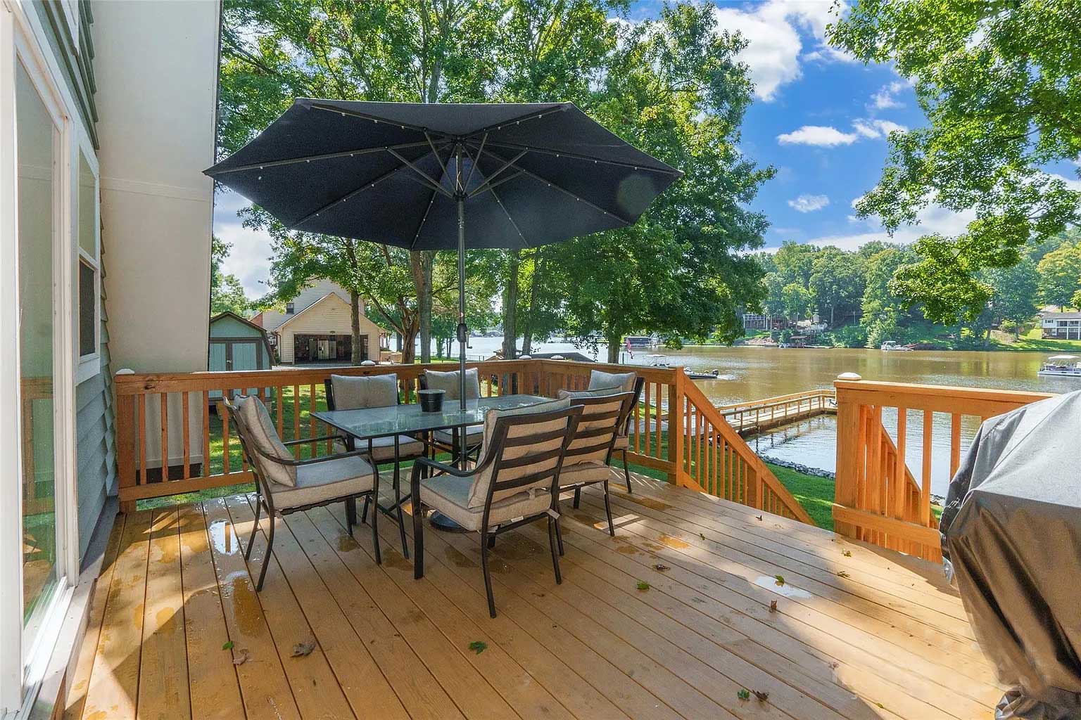 The stunningly beautiful waterfront property is secluded and quiet yet close to restaurants, shopping, and everything else you might want while visiting High Rock Lake.