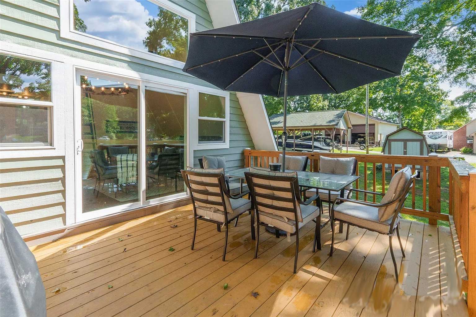 Water surrounds you on this picturesque water front location. Enjoy the brand new expansive deck overlooking your private boat dock and slip